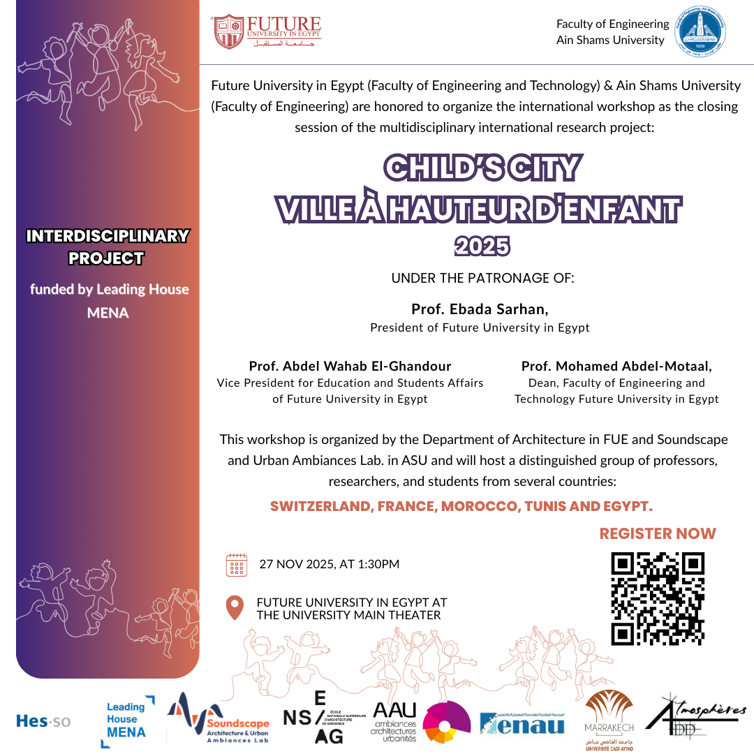 وتأتي هذه الورشة في إطار حرص جامعة المستقبل على تعزيز البحث العلمي الدولي، ودعم بيئات حضرية أكثر أمانًا وتفاعلًا للأطفال،