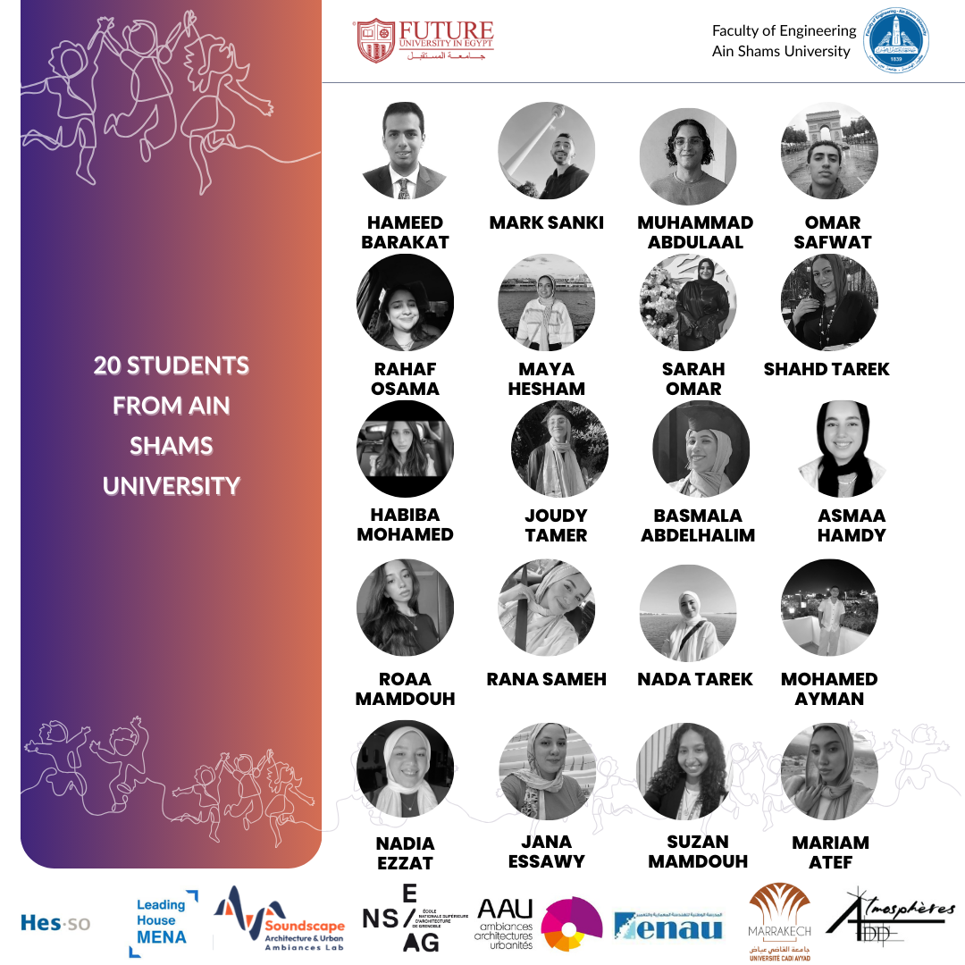 - Participants: Over ten international professors and researchers, students from the National School of Architecture and Urbanism in Tunis, as well as faculty members, teaching assistants, and students from Future University and the Faculty of Engineering at Ain Shams University